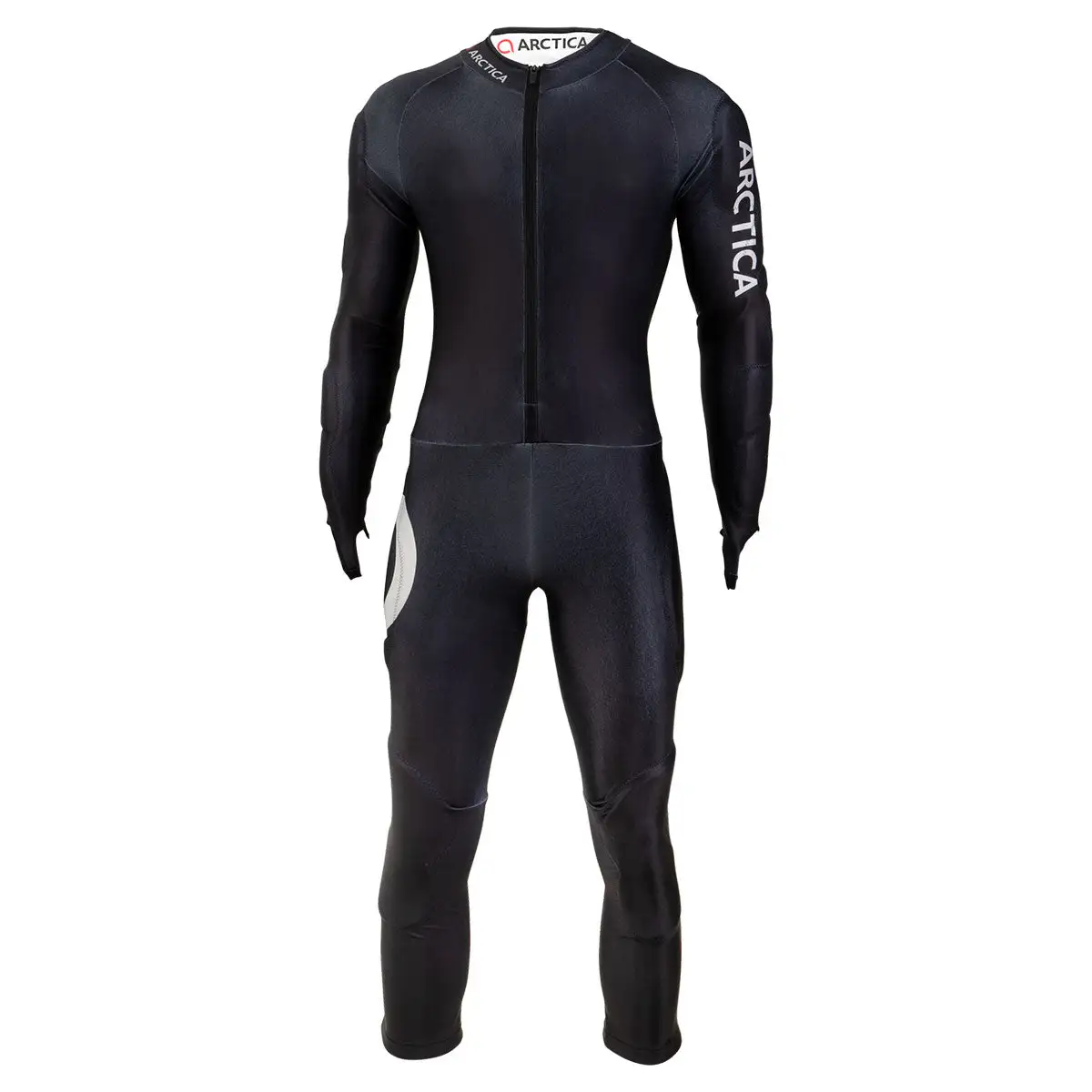The Arctica GS Speed Suit for unmatched quality, performance, and value. The FIS logo printed on the back left leg ensures legality. Engineered with a nine-panel anatomical construction and elastic thread to provide the best possible fit. Each race suit is cut and printed individually using a special process to ensure bright colors and long-lasting graphics. Spring-loaded zipper pulls, and silicone cuff grips guarantee that your suit is in place and close to the body. Pads are removable to customize per racer preference.
