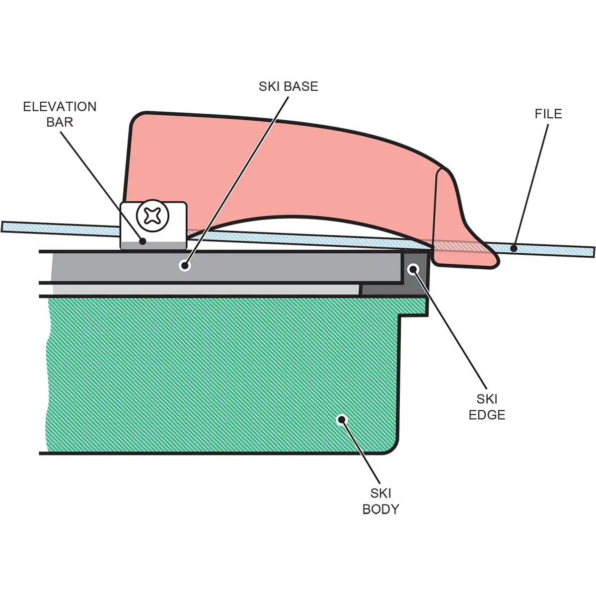 The Base BEAST’s accuracy is assured by a patented design, which maintains the ski base edge angle with a precise stainless steel elevation bar set at the optimum distance from the ski edge.