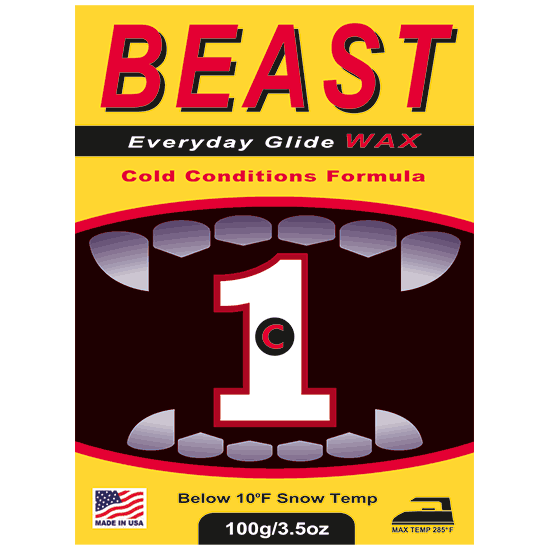 When the temperature drops below 10°F reach for BEAST 1C Super Cold Glide Wax to keep your skis moving fast. Designed to cover snow temperatures below the range of the BEAST 1 Everyday Glide Waxes. Formulated with special hydrocarbons and anti-static additives for cold, aggressive snow.