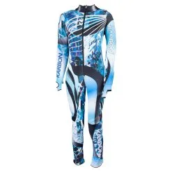 Karbon GS suits have been designed using the insights and recommendations of World Cup athletes. An anatomical, snug fit ensures less wind resistance and increased speed. This ski race suit features 3-dimensional stretch, custom printed dye-sublimated Lycra with padded protection, thumb anchor loops and grip elastic at boot top. FIS logo is printed on the left leg to conform with current FIS regulations.