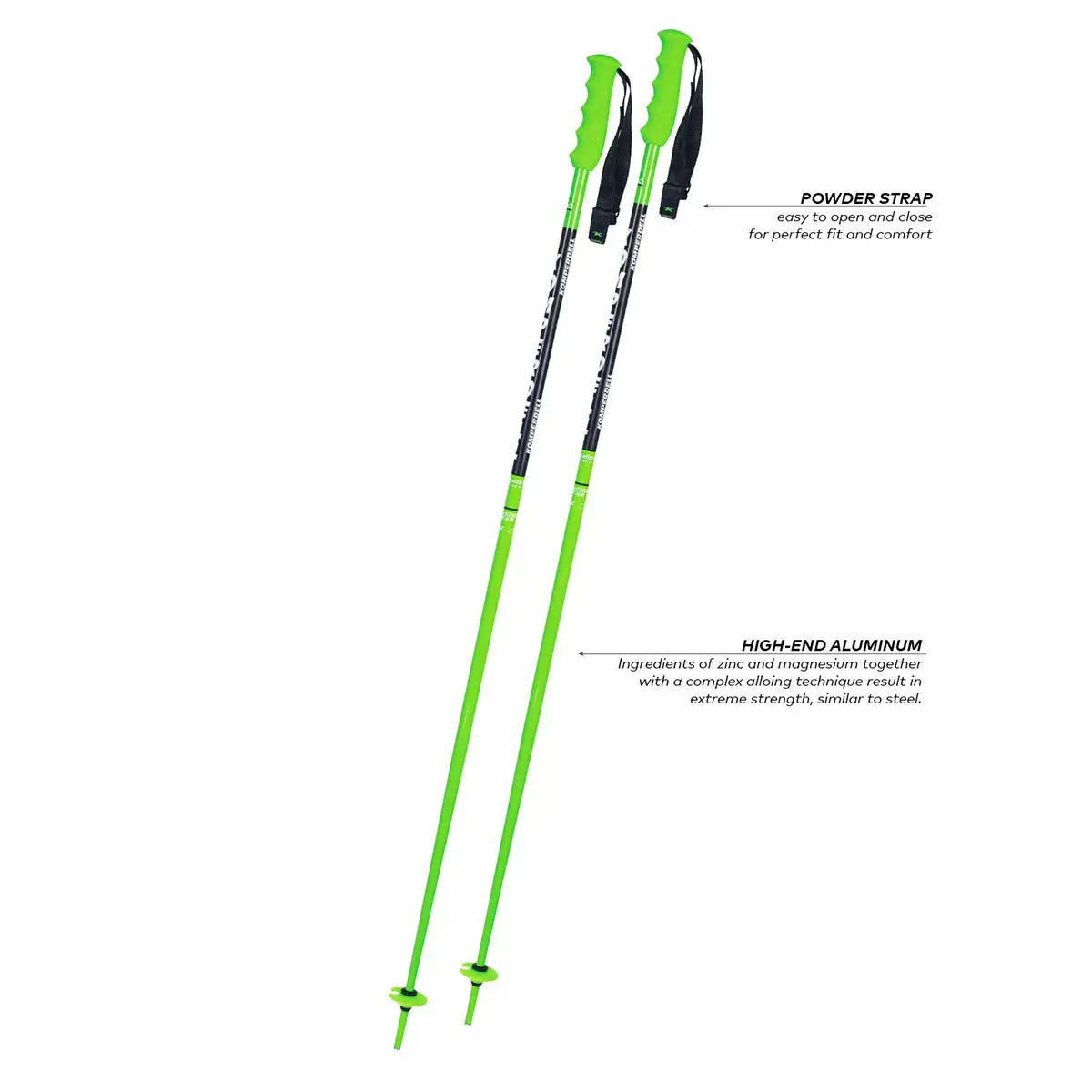 The Komperdell National Team ski pole has been the choice of World Cup Champions for over 30 years. These racing poles are constructed of an 18mm rigid high strength aluminum shaft. Features race baskets and Worldcup style grips. Compatible with pole guards. (Note: SL poles are straight and GS poles have a mild bend.)