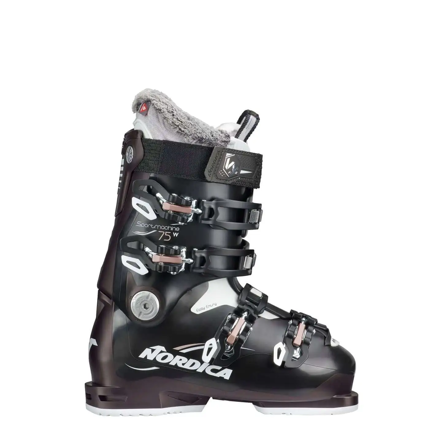 By boosting confidence and control, Nordica’s Sportmachine 3 75 W aims to help you become a better skier. Reimagined to offer even greater control, it features a wider yet low profile 102 mm fit and a softer shell that’s especially forgiving. Its 3 Force Construction showcases a new spine and cuff design that enhances efficiency by maximizing the transmission of energy to the ski. To create a more neutral stance that improves balance and reduces fatigue, the boot’s cuff can be fine-tuned to cradle the contours of your calf. And for a truly personal fit, its shell and liner can readily be customized. With an emphasis on progression, Nordica’s Sportmachine 3 75 W lets you forget about your feet and enjoy the day in comfort.