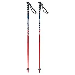 Slalom poles feature the DD5 grip with the ADD Tab system to prevent inadvertently dropping the poles and a small racing basket. GS poles have the same low profile DD5 grip and aerodynamic cone basket. (Note: SL poles are straight and GS poles have a mild bend.)