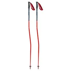 Slalom poles feature the DD4 grip with the ADD Tab system to prevent inadvertently dropping the poles and a small racing basket. Downhill and GS/SG poles have the notched low profile DH grip and aerodynamic cone basket. (Note: SL poles are straight and GS/SG poles have a mild bend and DH have a more dramatic bend.)